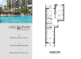 Продается квартира в жилом комплексе бизнес-класса «Лестория». В составе ЖК предусмотрена собственная аквазона площадью 473 квадратных метра с двумя подогреваемыми бассейнами, что соответствуют стандартам бизнес-класса.