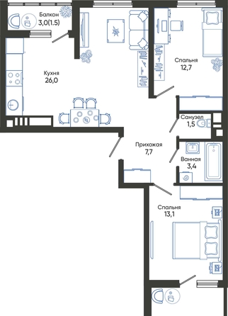 Продается квартира в жилом комплексе «Облака» от федерального девелопера «Неометрия».