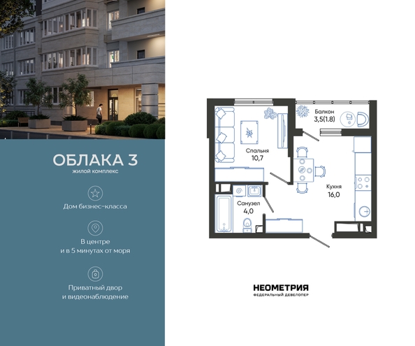 Продается квартира в жилом комплексе «Облака» от федерального девелопера «Неометрия».