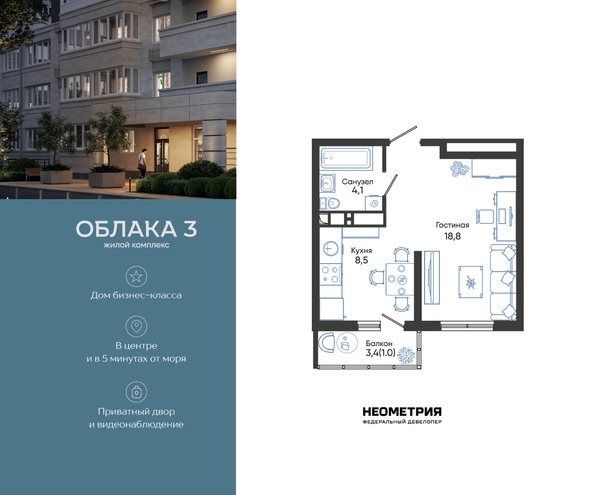 Продается квартира в жилом комплексе «Облака» от федерального девелопера «Неометрия».