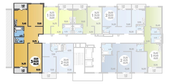Общая площадь квартиры — 88.3 кв.м. Тип дома — монолит-кирпич. Компания-застройщик — ВКБ-Новостройки.