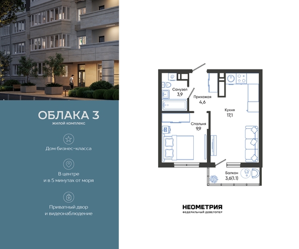 Продается квартира в жилом комплексе «Облака» от федерального девелопера «Неометрия».
