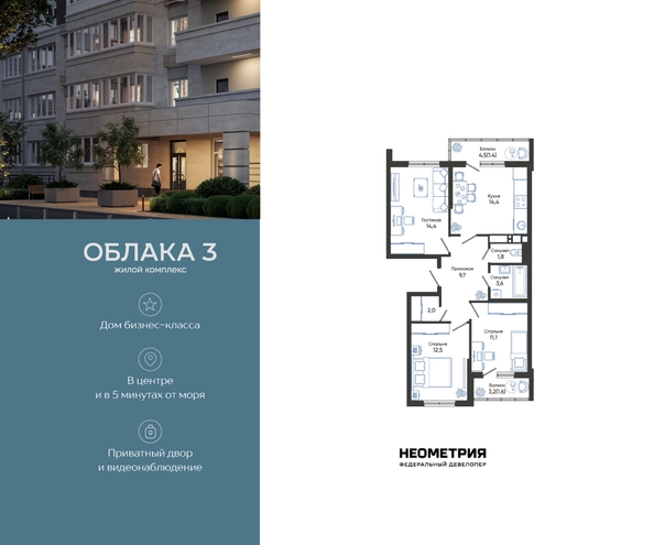 Продается квартира в жилом комплексе «Облака» от федерального девелопера «Неометрия».