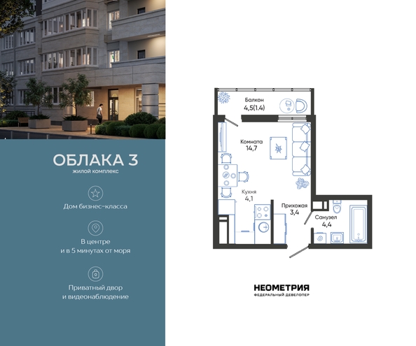 Продается квартира в жилом комплексе «Облака» от федерального девелопера «Неометрия».