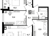 В продаже 3-комнатная квартира от застройщика! Мкр. «DOGMA PARK» г. Краснодар, Литер 19 Срок сдачи: 4 кв. 2027, общей площадью 68.8 кв.м., на 5 этаже.