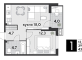 Срок сдачи: 4 кв. 2025, общей площадью 43.7 кв.м., на 2 этаже.