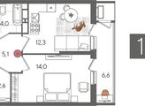 В продаже 1-комнатная квартира от застройщика! ЖК «Рекорд» 2 очередь, г. Краснодар, Литер 5 Срок сдачи: 4 кв. 2026, общей площадью 44.6 кв.м., на 22 этаже.