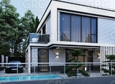 На территории каждого коттеджа: зона отдыха с бассейном, озеленение и парковочные места.
