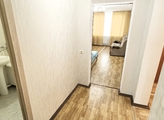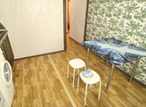 Во всех комнатах постелен линолеум, пластиковые окна, на окнах роллшторы и тюль, шторы, поклеены новые обои. В зале: кровать двуспальная, стол компьютерный с навесными шкафчиками, диван раскладной, кондиционер, два стула, журнальный столик.