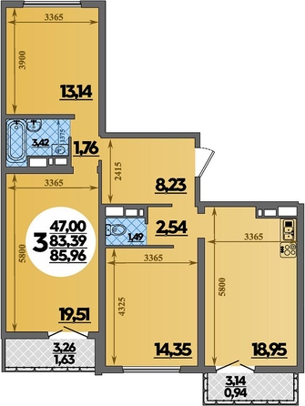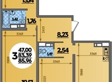 Общая площадь квартиры — 85.96 кв.м. Тип дома — панельный. Компания-застройщик — ВКБ-Новостройки.