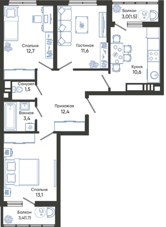Продается квартира в жилом комплексе «Облака» от федерального девелопера «Неометрия».