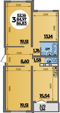 Общая площадь квартиры — 86.83 кв.м. Тип дома — панельный. Компания-застройщик — ВКБ-Новостройки.