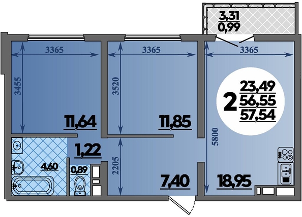 Общая площадь квартиры — 57.54 кв.м. Тип дома — панельный. Компания-застройщик — ВКБ-Новостройки.