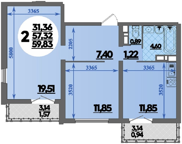 Общая площадь квартиры — 59.83 кв.м. Тип дома — панельный. Компания-застройщик — ВКБ-Новостройки.