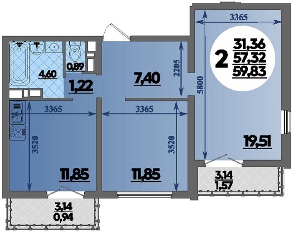 Общая площадь квартиры — 59.83 кв.м. Тип дома — панельный. Компания-застройщик — ВКБ-Новостройки.