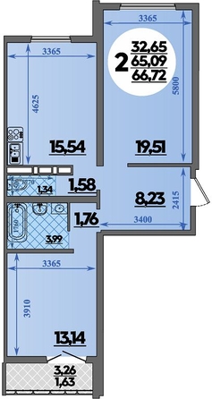 Общая площадь квартиры — 66.72 кв.м. Тип дома — панельный. Компания-застройщик — ВКБ-Новостройки.