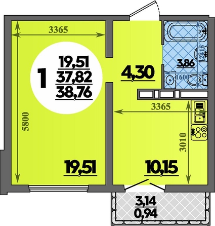 Общая площадь квартиры — 38.76 кв.м. Тип дома — панельный. Компания-застройщик — ВКБ-Новостройки.