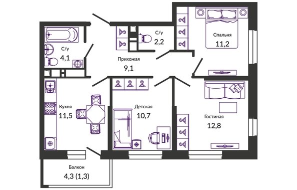 Продается квартира в жилом комплексе «Улыбка» от федерального девелопера «Неометрия». Все дома сданы, ключи в день сделки.