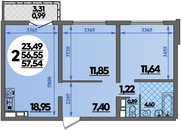 Общая площадь квартиры — 57.54 кв.м. Тип дома — панельный. Компания-застройщик — ВКБ-Новостройки.