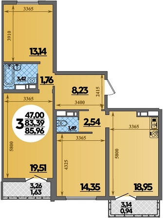 Общая площадь квартиры — 85.96 кв.м. Тип дома — панельный. Компания-застройщик — ВКБ-Новостройки.