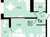 Продажа от застройщика 1 - комнатная квартира, общей площадью 36.3 кв.м.