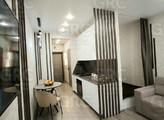 Внутри студии есть все необходимое для комфортного проживания. Она оборудована современной кухней, где вы сможете приготовить свои любимые блюда, а также просторной гостиной зоной, где вы сможете отдохнуть после долгого дня. Большие окна пропускают много света, что создает ощущение простора и уюта.