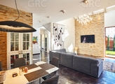Дом состоит из двух этажей. Всего 3 спальни, кабинет, гостиная, кухня. Территория дома огорожена, выполнено ландшафтное озеленение, декоративное освещение территории.