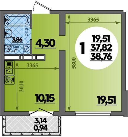 Общая площадь квартиры — 38.76 кв.м. Тип дома — панельный. Компания-застройщик — ВКБ-Новостройки.