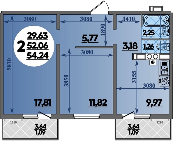 Общая площадь квартиры — 54.24 кв.м. Тип дома — панельный. Компания-застройщик — ВКБ-Новостройки.