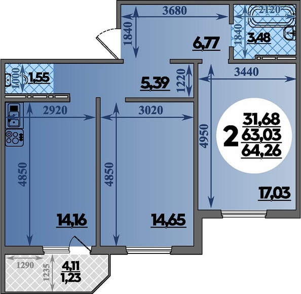 Продам 2-комнатную 64.26 кв.м. 10/16 этаж, монолит-панель, Краснодар, Александра Сапрунова ул, 37. Номер объявления SD23-385270.