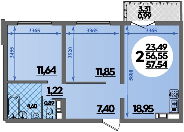 Общая площадь квартиры — 57.54 кв.м. Тип дома — панельный. Компания-застройщик — ВКБ-Новостройки.