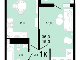 Продажа от застройщика 1 - комнатная квартира, общей площадью 36.3 кв.м.