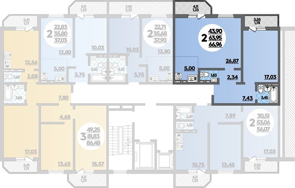 Продам 2-комнатную 66.96 кв.м. 2/13 этаж, монолит-панель, Краснодар, ГСС Дмитрия Мирошниченко ул, 43. Номер объявления SD23-385335.