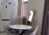 Электро-духовка.При входе огромный встроенный шкаф-купе от пола до потолка со множеством полок.Душевая кабина.Гигиенический душ.Потолки натяжные.Современные светильники.Квартира светлая,уютная,компактная,