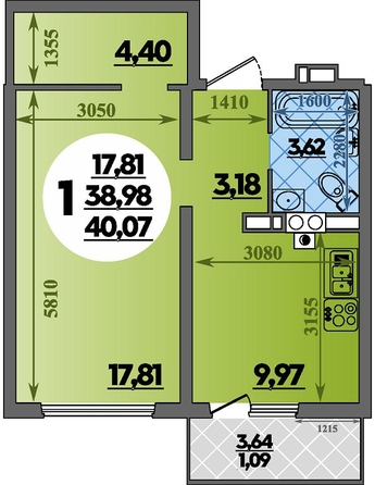 Общая площадь квартиры — 40.07 кв.м. Тип дома — панельный. Компания-застройщик — ВКБ-Новостройки.