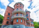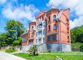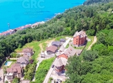 Цокольный этаж снаружи облицован базальтовой плиткой. Кровля из натуральной керамической черепицы фирмы "Braas". Для отделки внутренних помещений виллы использованы высококачественные материалы. Вестибюль и центральная лестница отделаны гранитом и мрамором. Санузлы, ванные комнаты облицованы керамической плиткой. Турецкая баня украшена уральским камнем, бассейн облицован мозаикой. Сауна из натурального дерева - абаш. Для каждого апартамента подобрана неповторимая цветовая гамма. Потолки частично исполнены как подвесные с монтажом точечных светильников. Стены лестничных маршей выполнены методом тиснения. Колонны холла отделаны методом "венецианка". Оконные блоки - двойные деревянные стеклопакеты из дерева - полисандр. Дверные блоки итальянского производства. Витражи дверей в сауну и турецкую баню - из термостойкого стекла. В апартаментах установлены кухонные гарнитуры, отвечающие требованиям профессиональных кухонных норм системы RCI. Вилла оборудована системой приточной и вытяжной вентиляцией фирмы Carrier. Система отопление и кондиционирования - по принципу предварительного отопления до стандартной комнатной температуры при помощи "фенкойлов" индивидуального управления, установленных в каждом помещении с общим "Чиллером" фирмы Carrier. Интенсивное отопление от котельной установки мощностью 130 кВт фирмы Vaillant, работающей на дизельном топливе. Внутренняя электропроводка трехфазная выполнена медным проводом 2,5 кв мм. Виллы оборудована системой пожаротушения с размещением распределительных пожарных гидрантов, системой аварийного электроосвещения, трубной системой централизованного пылесбора фирмы Vacuflo, а также подключена к центральной городской системе холодного водоснабжения и канализования. Снабжение горячей водой от бойлера ёмкостью 400 л фирмы Vaillant. Дома телефонизированы 10 парным кабелем, с согласованным подключением к городской телефонной сети. Дорожное подъездное покрытие - монолитный бетон. Коммуникации по наружному поливу выполнены в металлических трубах, проводка наружного электроосвещения - в пластиковых трубах. По периметру виллы проложена скрытая система сбора и отвода ливневых стоков, дождевых вод с крыши и отвода грунтовых вод. В окрестностях виллы живописный лесной массив, из окон потрясающие виды на море и горы.