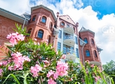 Вилла в Хостинском районе г. Сочи между руслами рек Мацеста и Агура. В 500 метрах от моря дом в дворцовом стиле из красного кирпича 1500 м.
