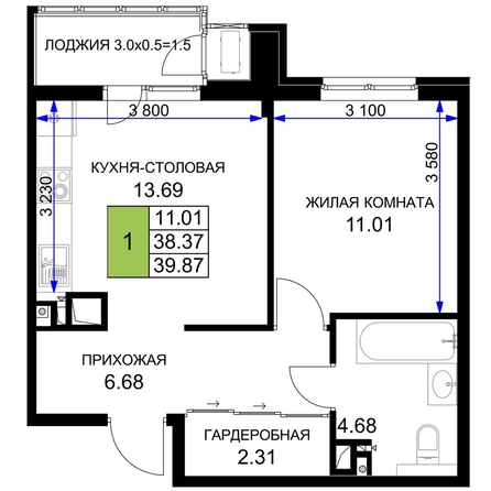 Продам 1-комнатную 40.95 кв.м. 10/16 этаж, монолит-кирпич, Краснодар, Сегодня, литер 5. Номер объявления SD23-386062.
