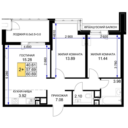 Продам 2-комнатную 60.8 кв.м. 15/16 этаж, монолит-кирпич, Краснодар, Сегодня, литер 5. Номер объявления SD23-386072.
