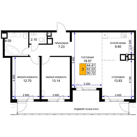 Продам 3-комнатную 92.1 кв.м. 16/16 этаж, монолит-кирпич, Краснодар, Сегодня, литер 5. Номер объявления SD23-386185.