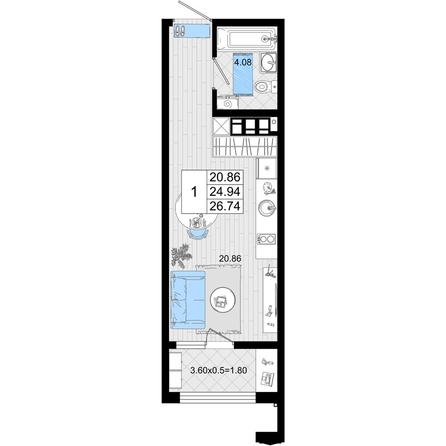 Общая площадь квартиры — 26.74 кв.м. Тип дома — монолит-кирпич. Компания-застройщик — ССК.