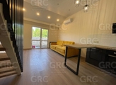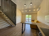 Распланирована квартира в два этажа: на первом этаже Гардеробная, кухня- гостиная с большим балконом.