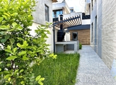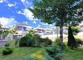 Озеленение, авто полив, авто подсветка. Мощение - натур. гранит, газон.