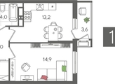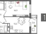 В продаже 1-комнатная квартира от застройщика! ЖК «Рекорд» 2 очередь, г. Краснодар, Литер 3 Срок сдачи: 4 кв. 2026, общей площадью 41.7 кв.м., на 13 этаже.