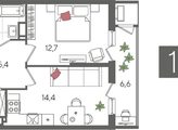 В продаже 1-комнатная квартира от застройщика! ЖК «Рекорд» 2 очередь, г. Краснодар, Литер 4 Срок сдачи: 4 кв. 2026, общей площадью 44.6 кв.м., на 23 этаже.