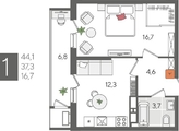 В продаже 1-комнатная квартира от застройщика! ЖК «Рекорд» 2 очередь, г. Краснодар, Литер 5 Срок сдачи: 4 кв. 2026, общей площадью 44.1 кв.м., на 24 этаже.