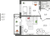 В продаже 1-комнатная квартира от застройщика! ЖК «Рекорд» 2 очередь, г. Краснодар, Литер 1 Срок сдачи: 4 кв. 2026, общей площадью 48.1 кв.м., на 2 этаже.