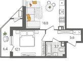 В продаже 1-комнатная квартира от застройщика! ЖК «Рекорд» 2 очередь, г. Краснодар, Литер 2 Срок сдачи: 4 кв. 2026, общей площадью 49.4 кв.м., на 3 этаже.