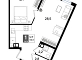 В продаже 1-комнатная квартира от застройщика! Мкр. «DOGMA PARK» г. Краснодар, Литер 13 Срок сдачи: 4 кв. 2027, общей площадью 46.4 кв.м., на 3 этаже.