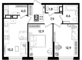 В продаже 2-комнатная квартира от застройщика! Мкр. «DOGMA PARK» г. Краснодар, Литер 15 Срок сдачи: 4 кв. 2027, общей площадью 59.3 кв.м., на 13 этаже.